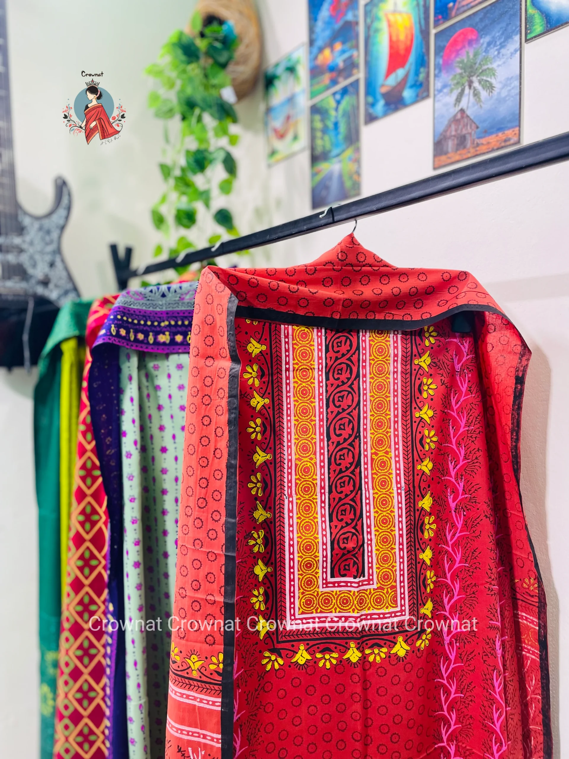 উন্নতমানের অর্ক সেঞ্চুরি ভয়েল ফেব্রিক – একদম আরামদায়ক।  🔸 হাতের বুটিক কারুকাজ – নজরকাড়া নিখুঁত ডিজাইন 🔸 লম্বা ও ফ্লোই জামা – ঘুরলেই বুঝবেন ক্লাস!